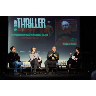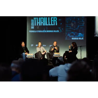 Na sceni su se publici obratili autor knjige Miodrag Majić, scenaristkinja istoimene serije Katarina Mitrović i reditelj Ivan Stefanović, otkrivajući detalje o nastanku knjige, njenoj ekranizaciji i temama koje otvara. U fokusu razgovora, koji je moderirala Sara Arsenović, novinarka Radio Beograda, bile su lične dileme junaka knjige, kao i tanka linija između istine i pravde ne samo u Majićevom romanu već i u svetu koji nas okružuje.