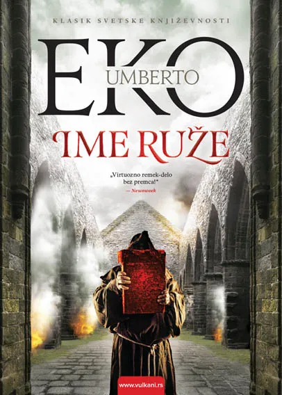Vanvremensko delo koje zamenjuje našu stvarnost sopstvenom.Engleski franjevački monah Vilijam od Baskervila stiže u vešto skrivenu opatiju u Alpima severne Italije. Prati ga mladi pomoćnik i benediktinski iskušenik Adso od Melka, koji mu pomaže da rasvetli surovo ubistvo. Osim što je poprište zločina, ovaj nadaleko čuveni benediktinski manastir, koji već vekovima privlači monahe iz cele Evrope, čuva mnoge tajne, a među njima i čuvenu biblioteku. Dok se Vilijam i Adso hvataju ukoštac sa zamršenom zagonetkom prepunom izazova i dolaze do zapanjujućih saznanja, misteriozna ubistva se nižu, a njih dvojica ulaze u trag staroj jeretičkoj knjizi koju ubica želi da zadrži daleko od očiju znatiželjnih monaha.U jeku borbe za duhovnu i svetovnu vlast, Vilijam stoji na pragu otkrića oštroumnog ubice...