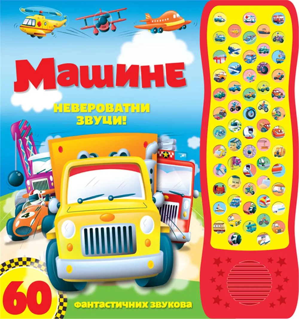 Vatrogasni kamion kaže tinu-ninu, motor kaže zum, vozić se oglašava ćihu-ćihu, ali kakve zvuke proizvode ostale mašine? Saznaj u ovoj neverovatnoj knjizi, prepunoj sjajnih mašina i sa šezdeset fantastičnih zvukova.