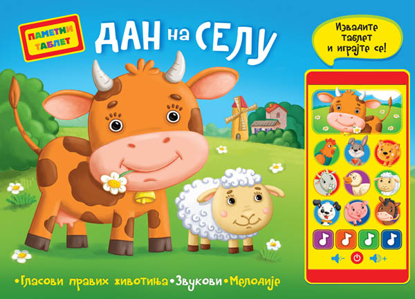 Moj pametni tablet: Dan na selu idealna je knjiga da se dete od najranijeg doba upoznaje sa raznim životinjama. Na zanimljiv i deci pažljivo prilagođen način naučiće kako se koja životinja zove, kako se oglašava, gde živi, šta na imanju sve radi i šta se od koje životinje dobija.