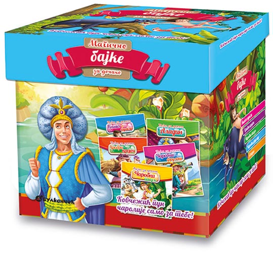 U kovčežiću Magične bajke za dečake nalazi se pet najlepših bajki o neustrašivim i mudrim junacima. Pojedinačno izdvojene slikovnice Hrabri krojač, Aladin, Knjiga o džungli, Čarobni pasulj i Čarobni frulaš donose priče o omiljenim junacima svakog dečaka.