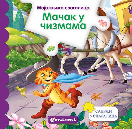 Pred vama je jedna od omiljenih dečjih bajki – Mačak u čizmama. Knjiga sadrži i 5 slagalica koje prate priču.