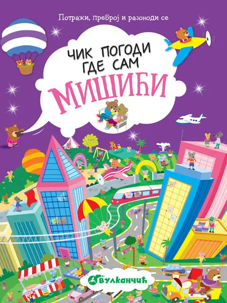 Deca će uz ove knjige učiti da broje, vežbati opažanje, odgovarati na pitanja i tako učiti nove reči. Knjiga sadrži 8 scena sa mnoštvom detalja. Na početku svake scene izdvojeni su predmeti koje dete mora da pronađe na sceni. Svaki od predmeta ponavlja se po nekoliko puta na velikoj sceni. Ispod svakog predmeta označeno je koliko se puta ponavlja na svakoj sceni. Pored toga, od deteta se traži da odgovori na dodatna pitanja ili da ispuni neki od zahteva: Koliko medvedića nije na tlu? Koje je ovo drvo? Koje je boje perje na krilima galeba? Otpevaj refren pesme koju najviše voliš. Eto malo razonode za vaše dete!