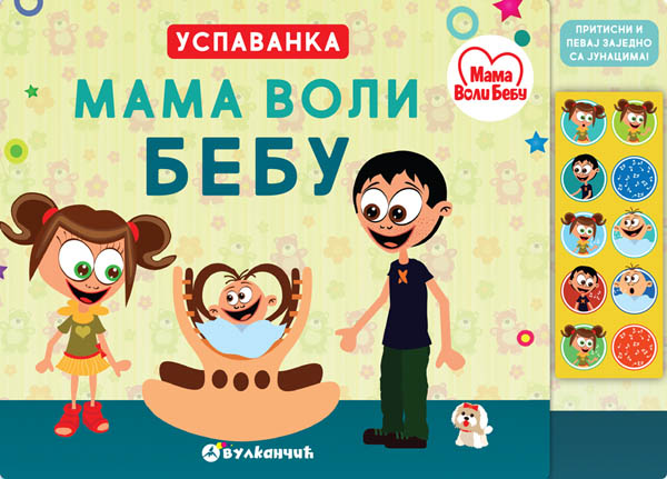 U ovoj veseloj zvučnoj knjizi mališani će se družiti sa luckastim pilićima i ostalim stanovnicima seoskog imanja. Uz pomoć zvučnog modula oživeće životinje na svakoj strani, a moći će i da pevuše uz ljupku pesmicu Mi smo pilići u toku čitanja ili zasebno. Zabava je zagarantovana! Mama voli bebu: uspavanka je zvučna knjiga sa 10 zvukova kroz koju će deca na novi način i uz propratnu priču doživeti istoimenu omiljenu pesmu, a roditelji lako uspavati ili razonoditi svoje mališane.
