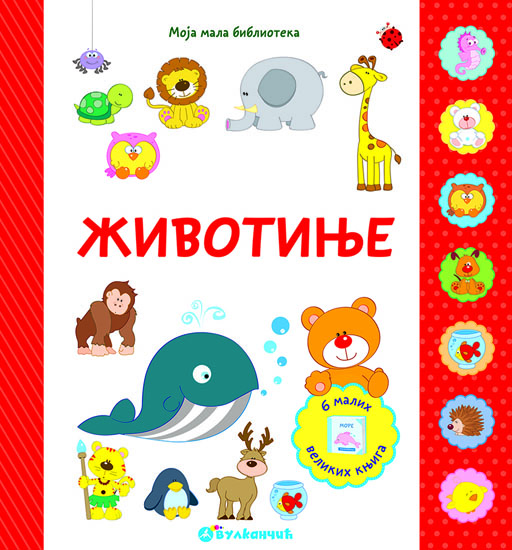 Knjiga Moja mala biblioteka: Životinje pružiće mogućnost mališanima da na zabavan način upoznaju sa životinjama. Prvo mogu da se druže sa kućnim ljubimcima, a zatim da nauče koje životinje žive u šumi, džungli, moru... Kada se umore od čitanja, deca mogu da okrenu poleđine svih šest knjiga, slože slagalicu i dobiju sliku raznih životinja.