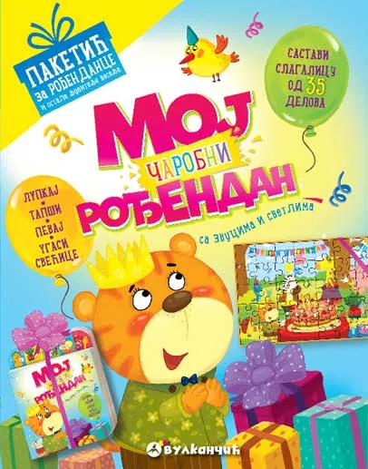 Dođi na tigrićevu rođendansku proslavu! Pokucaj na vrata, a čim ih rođendanac otvori, tada počinje zabava! Tapši, otpevaj rođendansku pesmicu sa drugim gostima i sviraj bubnjeve. Na kraju pomozi tigriću da ugasi svećice na torti. Ova knjiga puna je čudesnih aktivnosti i pravi je poklon za rođendan, ali i za bilo koju drugu posebnu priliku! Ovaj lepo upakovani komplet sadrži i slagalicu scene iz knjige od 35 delova.