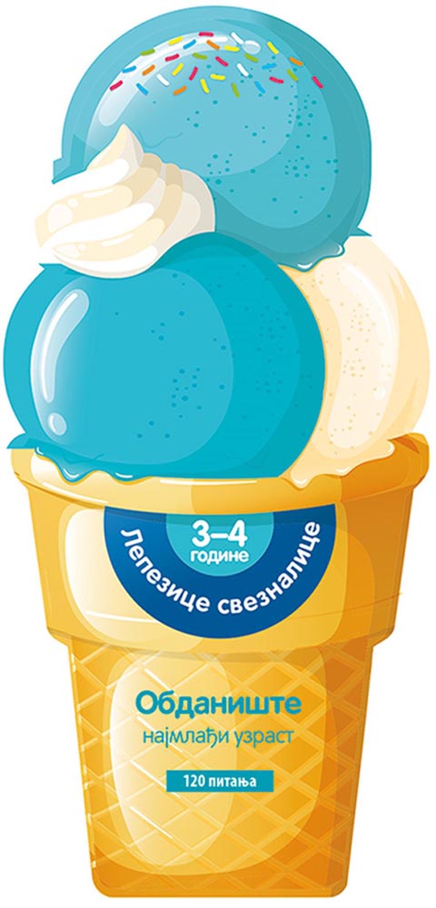 Osim što donose 120 novih pitanja za najmlađe, ove lepezice će obradovati mališane svojim fantastičnim oblikom sladoleda. U dobro poznatoj formi kartica sa pitanjima i odgovorima, Lepezice sveznalice: Obdanište – najmlađi uzrast pridružuju se ediciji edukativnih lepezica uz koje je učenje uvek zabavno. Raspust je! Divno! Učite, igrajte se i rashladite uz Lepezice sveznalice u obliku sladoleda. Dragi roditelji, Pitanja i odgovori iz Lepezica sveznalica već 25 godina omogućavaju deci da vežbaju uz zabavu, zato što je uvek lepše učiti kroz igru! Sada ćete uz novu lepezicu u obliku sladoleda sa svojom decom istražiti novih 120 pitanja u slikama, koja su sastavili vaspitači, i to o slovima i brojevima, bojama i oblicima, prostoru i vremenu... Učiti je veoma lako uz Lepezice sveznalice!