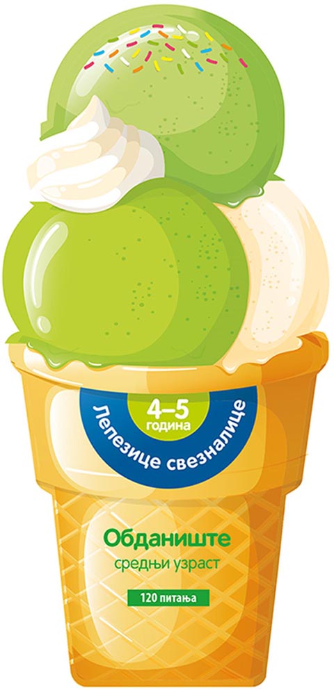 Osim što donose 120 novih pitanja za najmlađe, ove lepezice će obradovati mališane svojim fantastičnim oblikom sladoleda. U dobro poznatoj formi kartic sa pitanjima i odgovorima, Lepezice sveznalice: Obdanište – srednji uzrast pridružuju se ediciji edukativnih lepezica uz koje je učenje uvek zabavno. Dragi roditelji, Pitanja i odgovori iz Lepezica sveznalica već 25 godina omogućavaju deci da vežbaju uz zabavu, zato što je uvek lepše učiti kroz igru!Sada ćete, uz novu lepezu u obliku sladoleda, sa svojom decom kroz 120 pitanja u slikama istražiti svakodnevni život, životinjski svet, godišnja doba i naučiti nešto o našim čulima. Učiti je veoma lako uz Lepezice sveznalice!