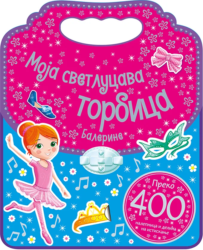 Gde god da kreneš, ponesi ovu svetlucavu torbicu i uživaj u mnogobrojnim zabavnim aktivnostima koje ćeš u njoj naći. Svaka devojčica radovaće se knjizi o balerinama koja sadrži preko 400 nalepnica, delove na istiskanje, fantastične mozgalice i slagalice.