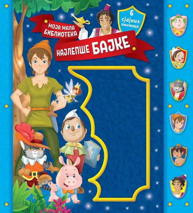Kada otvore kutiju u obliku knjige, mališane očekuje sjajno iznenađenje. U kutiji se krije mini-biblioteka od šest knjižica, koja sadrži šest prelepo ilustrovanih klasika za decu: Petar Pan, Pinokio, Knjiga o džungli, Aladin, Mačak u čizmama, Tri praseta. A kada se umore od čitanja, deca mogu da okrenu poleđine svih šest knjiga i slože slagalicu koju će tamo naći. Nezaboravno putovanje u čarobni svet bajki. Okreni poleđine svih 6 knjiga i napravi slagalicu!