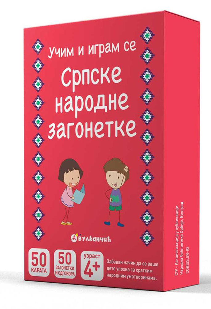Edukativne karte Učim i igram se – Srpske narodne zagonetke zamišljene su takoda se od dece ne očekuje da daju odgovor na svako pitanje, već da se putem igre upoznaju sa srpskim narodnim stvaralaštvom. Učestvujući u jednoj od najstarijih misaono-govornih igara, dete će biti ohrabreno da razmišlja o svetu oko sebe u uposli maštu kako bi na osnovu teksta stvorilo sliku pojma i ponudilo rešenje. Uz pomoć ovih karata deca će učiti da kreativno i logički misle, a usput će se zabavljati i otkrivati nešto novo o svetu koji ih okružuje.