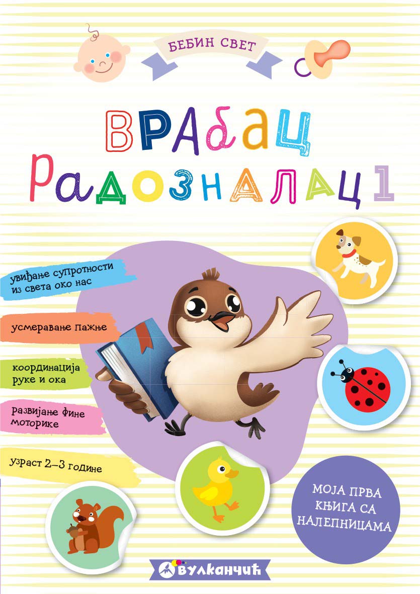 Vaši mališani će uz ovu knjigu sa nalepnicama na kreativan način uvideti neke od osnovnih suprotnosti i odnosa iz sveta oko nas. U tome će im pomoći razigrani Vrabac Radoznalac.