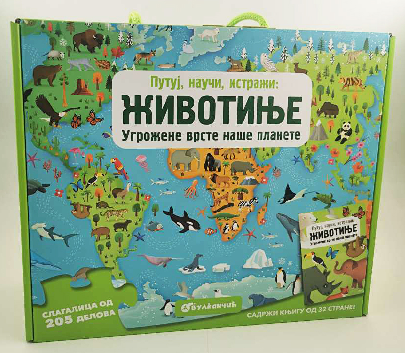 Svet se menja... a sa njim i bića koja u njemu žive. Složi slagalicu i upoznaj životinje, ugrožene vrste koje žive na različitim kontinentima. Zatim u knjizi saznaj i nauči više o njima.