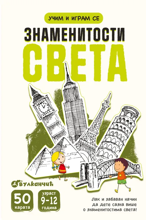 Uz edukativne karte Učim i igram se – Znamenitosti sveta, dete će se na zabavan i jednostavan način, kroz igru, upoznati sa znamenitostima širom sveta, koje se ističu svojim trajanjem i kulturno-istorijskim značajem.