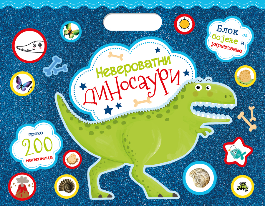 „Blok za bojenje i ukrašavanje: Neverovatni dinosauri" će zabaviti mališane i okupiraće njihovu pažnju! Divne ilustracije deci omiljenih dinosaura u kombinaciji sa zabavnim nalepnicama, postaće izvor zabave i mašte za sve mališane. Ispunjavanje stranica knjige nudi bezbroj mogućnosti, a zabava je zagarantovana!