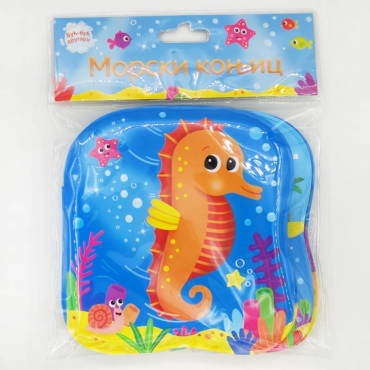 Morski konjic obožava da se brčka sa svojim drugarima! Pridruži mu se i ti i zabavi se uz ovu mekanu knjižicu za kupanje.