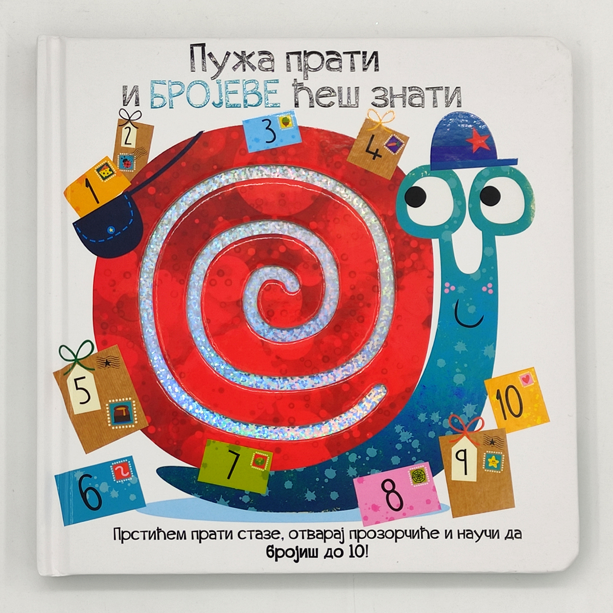 Pomozi gospodinu pužu da podeli poštu svim svojim susedima. Zabavi se učeći da brojiš do 10 u ovoj edukativnoj knjizi sa mnoštvom staza za praćenje i prozorčića, koji predstavljaju odličan način za razvijanje fine motorike.