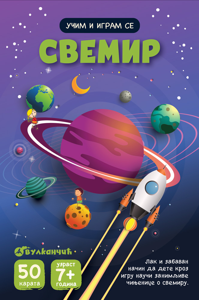 Edukativne karte Učim i igram se – Svemir osmišljene su tako da deca, kroz interakciju sa odraslima ili vršnjacima, uče o različitim pojmovima i pojavama iz svemira. Dete će se upoznati sa Sunčevim sistemom, planetama, zvezdama i mnogim zanimljivim činjenicama, a usput će vežbati kreativno i logičko razmišljanje.