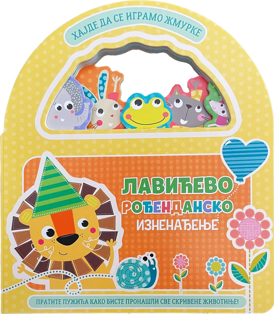 Laviću je rođendan, pa se njegovi prijatelji skrivaju kako bi ga iznenadili. Pratite prstom trag pužića i pronađite sve životinje!
