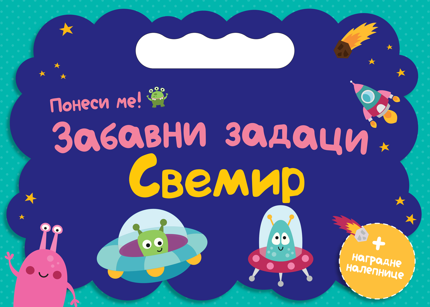 Kako bi zabava bila još veća, knjiga sadrži i šarene nagradne nalepnice koje treba zalepiti nakon svakog rešenog zadatka – kao dodatna motivacija za najmlađe!