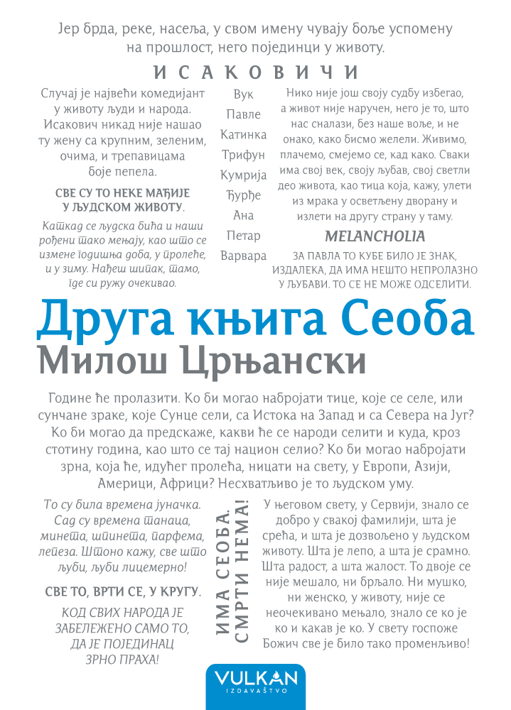 Druga knjiga Seoba objavljena je 1962. godine. Dakle, ove godine navršava se tačno šezdeset godina od njenog prvog objavljivanja, a ona i danas predstavlja jedno od najznačajnijih dela i Miloša Crnjanskog i srpske književnosti XX veka.