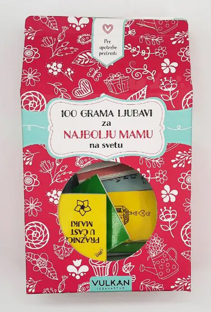 Kolekcija najlepših misli o ljubavi prema majci upakovanih u 20 knjižica koje će vas obradovati i sadržajem i izgledom. Kad god osetite potrebu za malo ljubavi, promešajte knjižice u kutiji i izvucite jednu od njih. Upijajte je celom svojom dušom. Ostavite da odstoji tri minuta. Udahnite. Osetite njeno blagotvorno dejstvo.